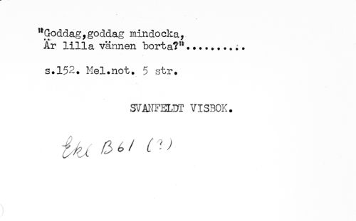 //// "Goddag,goddag mindocka. //// Ar lilla vännen borta?"..... //// s.152. Mel.not. 5 str. //// SVANFELDT VISBOK. ////