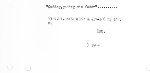//// "Goddag,goddag min fader"..... //// 13:7.111. ä:L:3:367 s.417-426 nr 142. //// N. //// ÅBO. ////