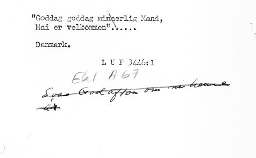 //// "Goddag goddag mii^erlig Hand, //// Hai er velkoinmen^' .... //// Danmark. //// L U F 3/46:1 ////