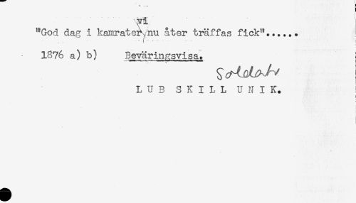 //// "God dag i kamrater,nu åter träffas fick"...... //// * / . < . , - - i //// f //// 1376 a) b) Beväringsvisa. //// LUB SKILL UNIK. //// ) //// < ////