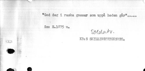 //// ^ * //// - //// ^God dag i raska gossar som uppå heden går^..... //// i - . - ^ //// Se: E.1875 u. //// M-i KB:S SKILLINGTRYGKSREG. //// K. ^^ W . //// A- . ////