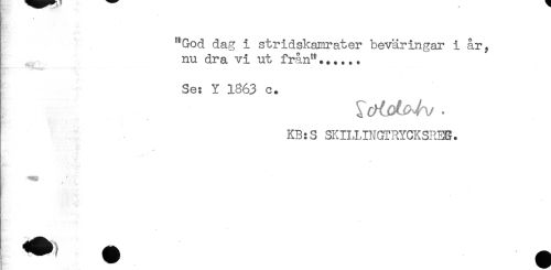 //// "God dag i stridskamrater beväringår i år, //// I nu dra vi ut från"...... //// r //// Se: Y 1363 c. //// - //// KB:S SKILUNGTRYCKSREB. //// - . . ////