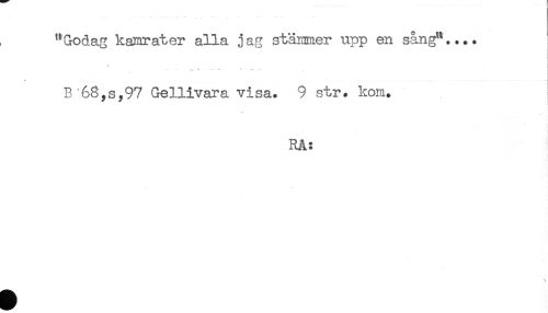 //// "Godag kamrater alla jag stämmer upp en sång".... //// . //// -* - n. " .....** '' -- -<*. //// B '68,Sy97 Gellivara visa. 9 str. kom. //// RA: ////
