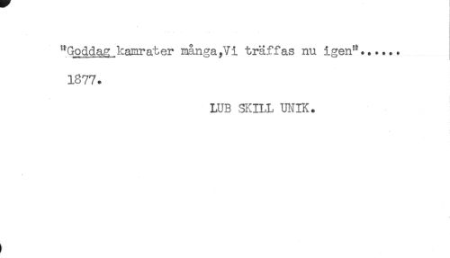 //// "Goddag kamrater många,Vi träffas nu igen"...... //// 1877. //// LUB SKILL UNIK. ////