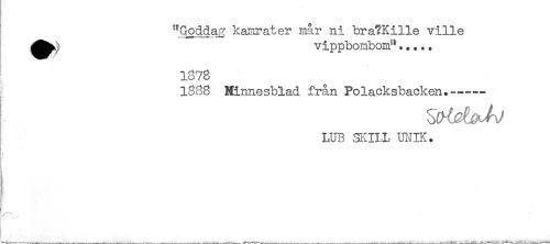 //// ^Goddag kamrater mår ni bra?Kille ville //// vippbombom^..... //// 1378 //// 1888 Minnesblad från Polacksbacken.----- //// LUB SKILL UNIK^ //// t ////