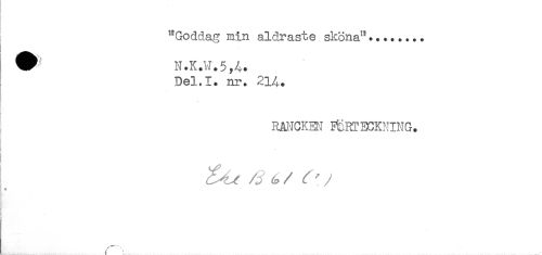 //// "Goddag min aldraste sköna"... //// Del.I. nr. 214. //// RANCKEN FÖRTECKNING. //// i //// ! //// ! //// } //// r //// A ^ r- //// /+ //// t ////