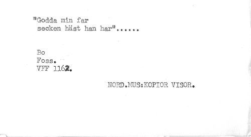 //// "Gödda min far //// secken häst han har"...... //// Bo //// Foss. //// VFF 1163. //// NORD.MUS:KOPIOR VISOR. ////