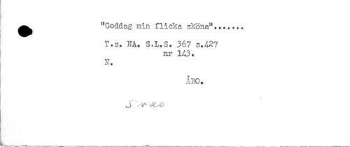 //// t //// ^ '^Goddag min flicka sköna"....... //// T.s. NA. S.L.S. 367 s.427 //// nr 143. //// N. //// ÅBO. ////