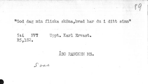 //// * //// "God dag min flicka skona,hvad har du i ditt sinn" //// * //// < //// t - < //// 5:4 MV? Uppt. Karl Ervast. //// i //// ÅBO RANCKEN MS. ////