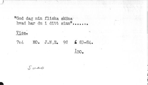 //// "God dag min flicka sköna //// hvad har du i ditt sinn"....... //// Visa. //// 7:4 HO. J.N,E. 98 JC 83-84. //// ÅBO. //// H //// } //// c //// - < ////