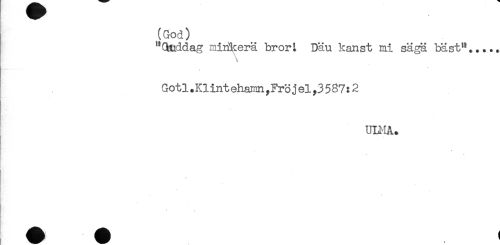 //// (God) //// "3nddag niiikerä bror t Däu kanst mi sägä bäst^..... //// \ //// Gotl.Klintehainn,Fr3jel,3587:2 //// uniA. //// . //// ^^^^^ - ////