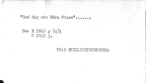 //// - //// "God dag min kära Nisse"....... //// Se: E 1842 g (q)L //// N 1843 j.. //// KB: S SKILLDJGTRYCKSREG: //// . //// i* //// i //// i ////