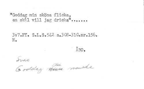 //// t //// 'l //// "Goddag min sköna flicka, //// en skål vill jag dricka"....... //// 3:'7.PY. S.L.S.542 s.3C6-3l0.nr.l56. //// N. //// ÅBO. //// ^^^ ////