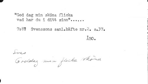 //// "God dag min sköna flicka //// vad har du i ditt sinn".......! //// e //// B //// 7:8? Svenssons saml.häfte nr.2. s.37. ! //// ÅBO. [ //// < //// r //// ! //// ! //// t ////