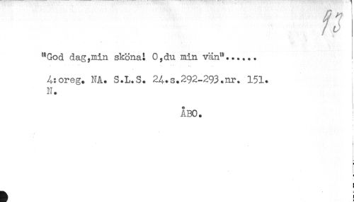 //// /J //// "God dag,min sköna! 0,du min vän"...... //// <, - //// A:oreg. NA. S.L.S. 2A.s.292-293.nr. 151. //// N. //// ÅBO. //// < //// H //// ! //// ) //// < //// ) //// ) ////