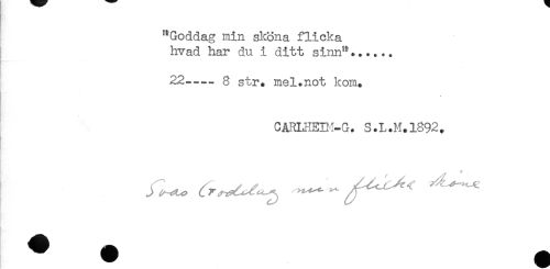 //// "Goddag min sköna flicka //// hvad har du i ditt sinn"...... //// 22----8 str. mel.not kom. //// CARLHEIM-G. S.L.M.1892+ ////