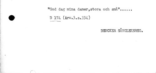 //// "God dag mina damer,stora och små"...... //// ^ D 174 (Arw.3.s.334) //// ! //// i //// ! //// DENCKER SANGLEKSREG. //// i //// Y //// ; //// !. //// i //// y //// ! //// ' //// ! * //// t r^ ////