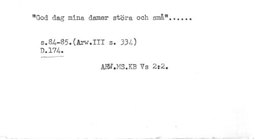 //// "God dag nina damer störa och små"...... //// s.84-85.(Arw.III s. 334) //// n.174. //// A^^.HS.KB Vs 2f2. ////