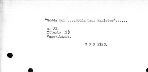 //// "Gödda mor .... gödda herr magister"...... //// s. 31. //// Ytterby (B& //// Vaggv.barnv. //// V F F 2120. ////