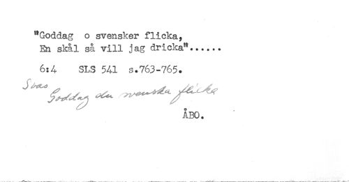 //// "Goddag o svensker flicka, //// En skål så vill jag dricka"...... //// 6:4 SLS 541 s.763-765. //// ÅBO. ////