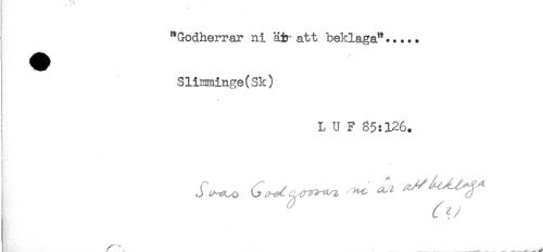 //// "Godherrar ni ä& att beklaga"..... //// Slimminge(Sk) //// - //// i //// L U F 85:126. //// ! ////
