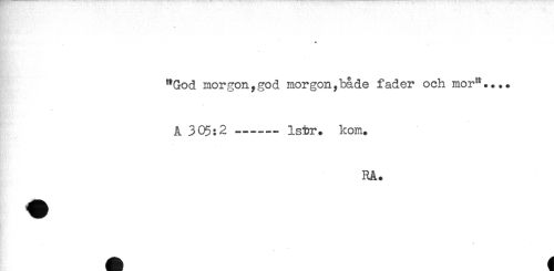 //// - //// "God morgon,god morgon,både fader och mor".... //// A 3 05:2 ---lstr. kom. //// * //// * //// - //// RA. ////