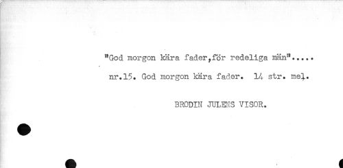 //// "God morgon kära fader,för redeliga män"..... //// //// /nr.15. God morgon kära fader. 1A str. mel. //// BRODIN JULENS VISOR. ////