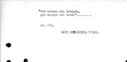//// "God morgon min brudgum, //// god morgon min brud:".......+. //// nr. 291. //// SÄWE GOTLÄNDSKA VISOR. ////