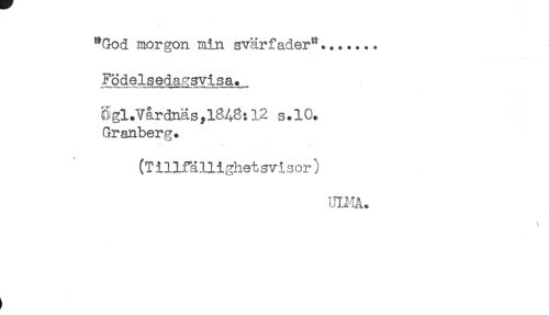 //// "God morgon mtn svärfader"....... //// Fodelseda^svisa. //// Sgl.Vårdnäs,l848:l2 s.10. //// Granberg. //// (Tillfällighetsvisor) //// IJLHÅ. //// t ////