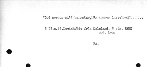 //// -fr..; //// "God morgon mitt herrskap,här kommer lussebrud"*... //// B 78.s.35.LuciaI^väde från Dalsland. 5 str. XKSX //// not. kom. //// RA. ////