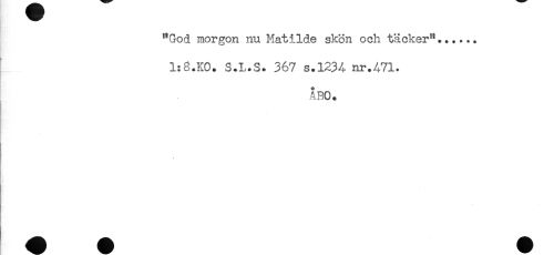 //// "God morgon nu Matilda skön och täcker"...... //// 1:8.K0. S.L.S. 367 s.1234 nr.A71. //// ÅBO. ////