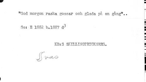 //// ! //// ! //// t //// "God morgon raska gossar och glada på en gång".. //// Se: E 1882 b.1887 d^ S //// H //// i //// E //// E //// - //// KB:S SKILUNGTRTCKSREG. i //// ^^ j //// r //// ) ! ////