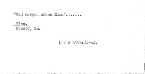 //// i //// ! //// r //// "God morgon sköna Emma"....... //// Visa. ' //// Ryssby, Sm. - //// i //// < //// L U F 4774:43-44. //// < ////