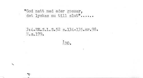 //// "God natt med eder gossar, //// det lyckas nu till slut"...... //// 3:4.RE.S.L.3.52 s.134-335.nr.9S. //// N.s.179. //// ÅBO. //// 4 ////