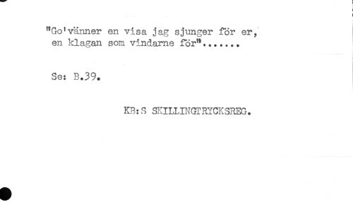 //// < //// "Go'vänner en visa jag sjunger ior er, //// en klagan som vindarne för"....... //// i //// i //// Se: B.39. //// KB:S SKILLINGTRYCKSREG. ////