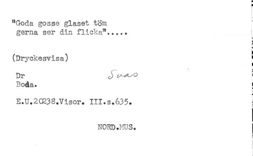 //// "Goda gosse glaset tom //// gerna ser din flicka"..... //// e //// (Dryckesvisa) ' //// ! //// Dr ! //// ; //// Boda. ' //// a //// i- //// E.U.2C238.Visor. III.s.635. //// NORD .MUS. //// * //// r //// i //// r ////
