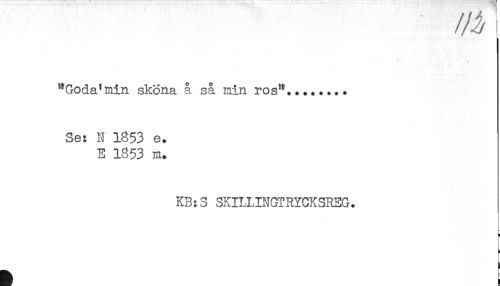 //// ^ I //// t //// "Goda'min sköna å så min ros"... //// Se: N 1853 e. //// E 1853 m. //// KB:S SKILLINGTRYCKSREG. ////
