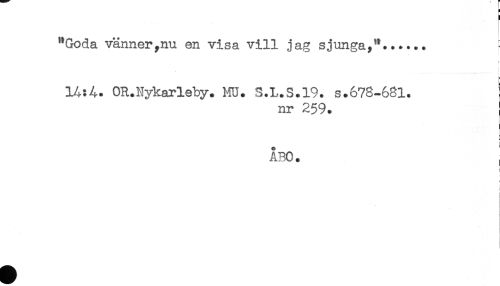 //// "Goda vänner,nu en visa vill jag sjunga,"...... //// < //// OR.Nykarleby. MU. 3.1.S.19. s.678-681. //// nr 259. //// - //// ÅBO. , //// j //// < ////