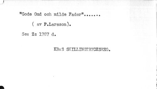 //// "Gode Gud och milde Fader"....... //// ( av P.Larsson). //// Se: Zz 1787 d. //// KB:S SKILLINGTRYCKSRBG. //// t //// t //// < //// t ////