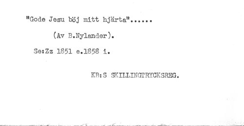 //// "Gode Jesu böj mitt hjärta"...... //// (Av B.Nylander). //// Se:Zz 1851 e.1858 i. //// KR:S SKILHNGTRYCKSREG. ////