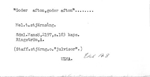 //// "Göder afton,göder afton"... //// Mel.t.stjärnsång. //// Sd3il.vans3y2l97ys.l83 kaps. //// Ringström,A. //// (Staff.stjärng.o."julvisor".) //// ULMA. ////