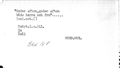 //// "Göder afton,göder afton //// både herre och fru"...... //// (mel.not.() //// Mskpt.l.s.241. //// Ds //// Åmål i //// NORD.MUS. //// F //// ! //// < //// : ////