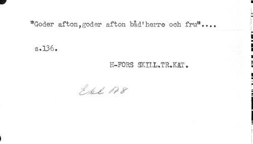 //// "Göder afton,göder afton båd'herre och fru".... ; //// r //// 5 //// s.136. S //// H-FORS SKILL.TR.KAT. ' //// i //// < //// H //// f //// t //// ! ////