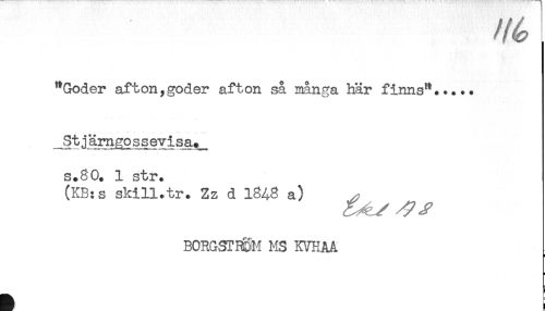 //// "Göder afton,göder afton så många här finns"..... //// s.80. 1 str. //// (KB:s skill.tr. Zz d ISAS a) ^ //// BORGSTBDH MS FTHAå ////