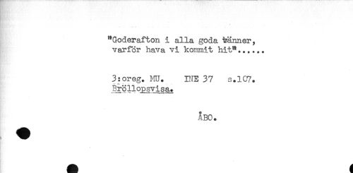 //// " ' -*' ^ . . . . , //// "Goderafton i alla goda känner, //// varför hava vi koimnit hit"...... //// 3:oreg. HU. DJE 37 S.1C7. //// Bröllopsvisa* //// ÅBO. //// * ////