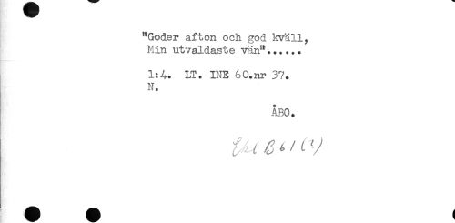 //// "Göder afton och god kväll, //// Min utvaldaste vän"...... //// 1:4. LT. INE 60.nr 37. //// N. //// ÅBO. ////