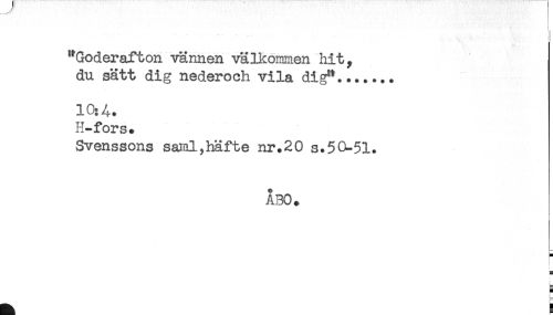 //// "Goderaf ton vännen välkommen hit, //// du sätt dig nederoch vila dig"....... //// 10:4. //// H-fors. //// Svenssons saml,häfte nr.20 s.50-51. //// ÅBO. //// H //// L //// B //// L ////