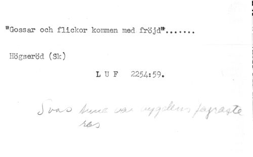 //// "Gossar och flickor kommen med fröjd"....... //// HSgserSd (Sk) //// I //// L U F 225A:59. ! //// i ////