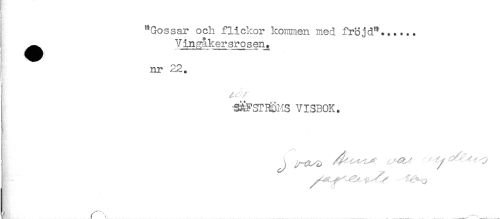 //// I "Gossar och flickor kommen med fröjd"...... //// ^^ V inviker sr o s en. //// nr 22. //// t //// j SÄFSTlSMS VISBOK. ////