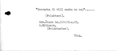 //// "Gossarna di vill smeka me mej"...... //// ' (Polsktext). //// Sdm.Akers hd.347:59.s.25. //// G.Eriksson. //// ] (Polsktexter). //// t //// ULMA. ////